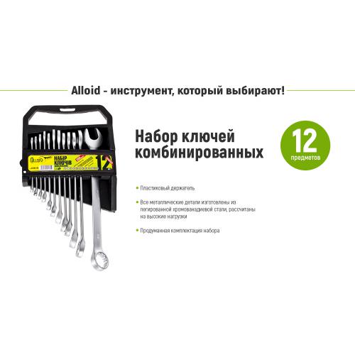 Набір комбінованих тріскачкових ключів Alloid використовується для обслуговування автомобілів, ремонту техніки, складання металоконструкцій та виконання слюсарних робіт. Тріскачковий механізм значно полегшує роботу у вузьких і важкодоступних місцях.