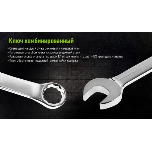 Ключі виготовлені методом гарячого штампування з легованої хромованадієвої сталі (Cr-V), що забезпечує високу міцність і стійкість до зношування. Точна геометрія робочих поверхонь сприяє надійному контакту з болтами та гайками.