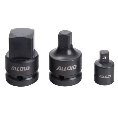 Набір ударних перехідників Alloid, 3 предмети – це компактний та надійний комплект адаптерів, призначений для використання з ударним інструментом. Перехідники дозволяють змінювати розмір приєднувального квадрата, забезпечуючи сумісність між різними типами тріскачок, подовжувачів і головок. Ідеальний варіант для автосервісів, майстерень і домашнього використання.