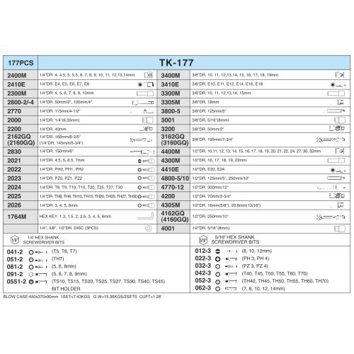 Набір професійних інструментів HANS включає 177 високоякісних предметів, розрахованих на квадрати 1/2, 1/4 і 3/8 дюйма.