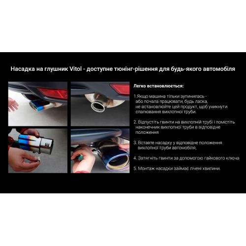 Насадка на глушник від торгової марки Vitol виготовлена на сучасному високоточному обладнанні, що гарантує високу якість виконання виробу.