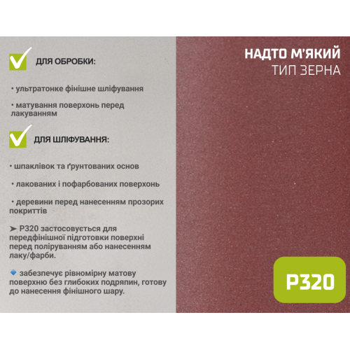 Однорідне зерно P280 забезпечує рівне шліфування без подряпин.