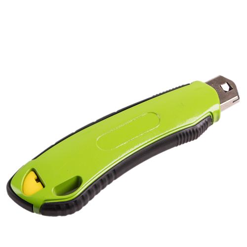 Безпека забезпечується спеціальним автоматичним запірним механізмом. Двокомпонентна рукоять спеціальної форми робить роботу з ножом комфортною. Лезо: 100 мм x 18 мм, в комплекті – 6 шт,