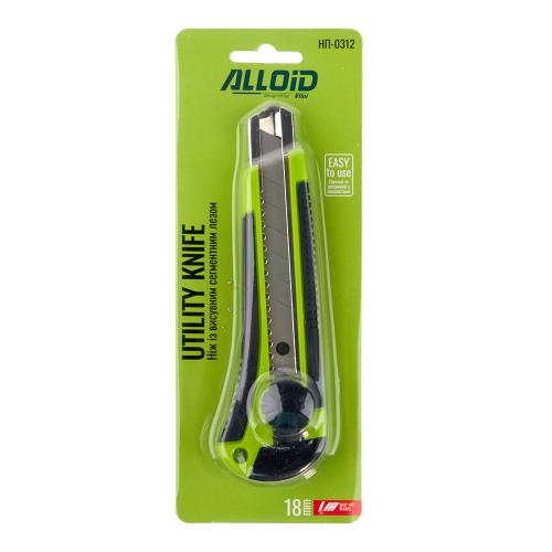 Ніж пластик/гума з гвинтовим фіксатором з висувним сегмент лезом 18мм Alloid