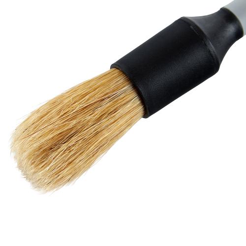 Кисть для дітейлінгу 19×5 см — це зручний інструмент для делікатного очищення важкодоступних місць в салоні та на кузові авто. Підходить для очищення вентиляційних решіток, кнопок, швів, шильдиків, емблем і дисків.