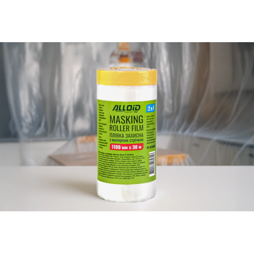 Захисна плівка Alloid Pro із вмонтованою малярною стрічкою — це зручне рішення «2 в 1» для надійного укриття під час ремонтних, фарбувальних та монтажних робіт. Прозора поліетиленова плівка щільно прилягає до будь-яких поверхонь, а малярна стрічка забезпечує міцну фіксацію навіть на шорстких або вертикальних площинах.