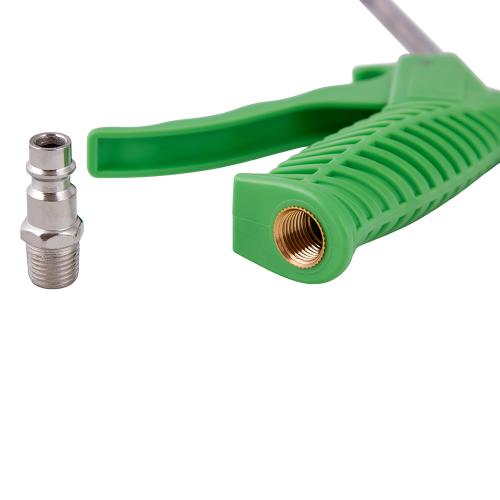 Міцний пластиковий корпус витримує щоденне навантаження, а хромоване металеве сопло гарантує довготривале використання. У комплект входить адаптер для швидкого підключення до компресора.