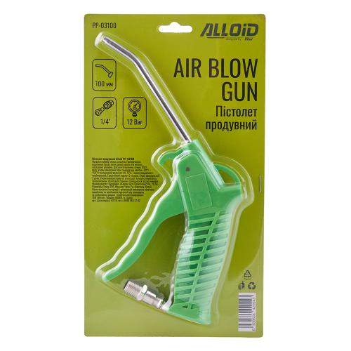 Зручний продувний пістолет Alloid із соплом 100 мм — це ефективний інструмент для очищення обладнання, деталей, інструментів від пилу, стружки та вологи. Його компактний розмір дозволяє працювати в тісних просторах, наприклад, під капотом авто або в технічних нішах.