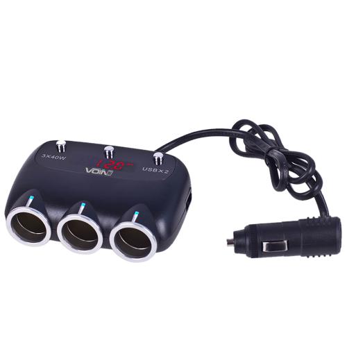 Розгалужувач VOIN SC-3003 призначений для одночасного підключення декількох пристроїв у бортовій мережі автомобіля 12/24В. Оснащений трьома розетками прикурювача та двома USB-портами із вихідним струмом 2400mA, а вбудований вольтметр відображає поточну напругу бортової мережі.