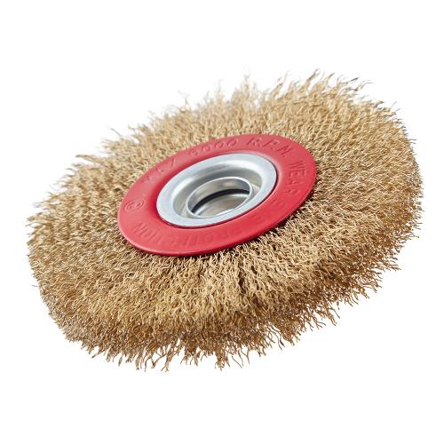 Дискова щітка Alloid 125 мм із крученого латунованого дроту — надійний інструмент для видалення іржі, окалини, старої фарби та бруду. Підходить для більшості заточувальних верстатів завдяки стандартному отвору 22,23 мм. Стійкий дріт гарантує довгий термін служби навіть при інтенсивному використанні.