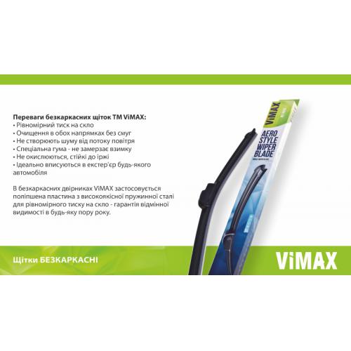 Безкаркасна щітка склоочисника Vimax забезпечить рівномірний притиск до скла, забезпечивши тим самим ефективне очищення скла.