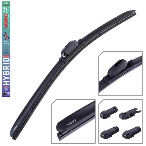 Гібридна щітка склоочисника VOIN HYBRID Ultra 21″ — практичний вибір для щоденної експлуатації з акцентом на тиху роботу, стабільний притиск і зручну сумісність завдяки комплекту адаптерів.