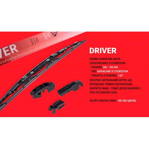 Двірники VOIN DRIVER – це каркасні склоочисники, виконані з високоякісних матеріалі, які щільно прилягають до скла завдяки своїй унікальній конструкції, розробленої британським брендом Voin, їх обладнано аеродинамічним спойлером для кращого прилягання щітки до скла на великих швидкостях, що значно покращує якість очистки поверхні.