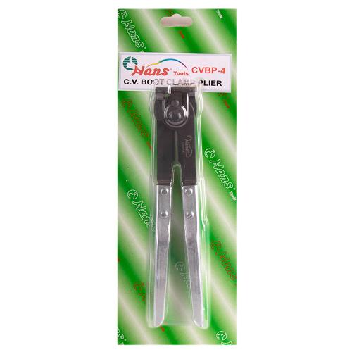 Щипці HANS CVBP-4 призначені для встановлення та зняття хомутів приводних валів (CV-суглобів) в автомобілях. Інструмент оснащено спеціальними вигнутими губками та надійним важільним механізмом, що забезпечує рівномірне зусилля при роботі з хомутами різного діаметра. Гостроконечні наконечники губок легко входять у зазор хомута, дозволяючи швидко й безпечно зафіксувати або розжати його, не пошкоджуючи гумові елементи.