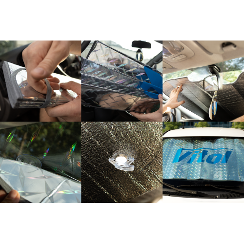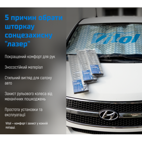 Сонцезахисна шторка “Лазер” Vitol (1500х700мм) — надійний спосіб уберегти салон вашого авто від перегріву. Металізоване покриття ефективно відбиває сонячні промені, зберігаючи комфортну температуру навіть у спекотні дні.