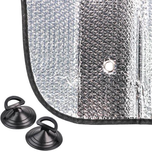 Шторка кріпиться на лобове скло за допомогою двох присосок. Залишаючи її прикріпленою до скла Ви вбережете салон авто від перегрівання, вигоряння кольору і негативного впливу ультрафіолету.