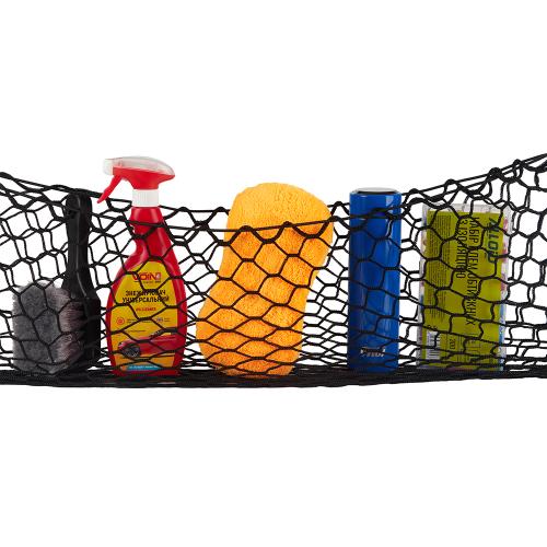 Сітка для багажу VITOL допомагає надійно зафіксувати речі в багажнику чи на вантажній полиці. Завдяки гачкам вона легко кріпиться та витримує навантаження під час руху.