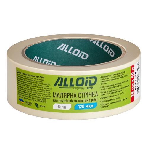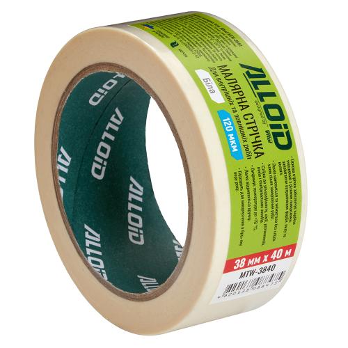Стрічка малярська біла 38мм х 40м, 120мкм Alloid
