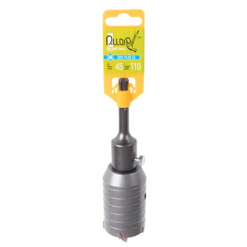 Корончате свердло Alloid діаметром 45 мм з адаптером SDS Plus (110 мм) призначене для точного та ефективного свердління отворів у бетоні, цеглі, природному камені та газобетоні. Побідитові ріжучі елементи гарантують довговічність, високу швидкість свердління та стійкість до механічних навантажень.