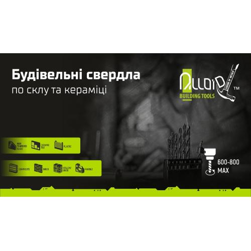 Свердло торгової марки Alloid Building призначене для швидкого і ефективного свердління отворів у керамічній плитці або незагартованої склі. Наконечник свердла виконаний зі спеціального сплаву титану з вольфрамом, заточка проведена на високоточному сучасному німецькому обладнанні. Завдяки складу та заточуванню наконечник свердла витримує тривалу роботу і має збільшений робочий ресурс.