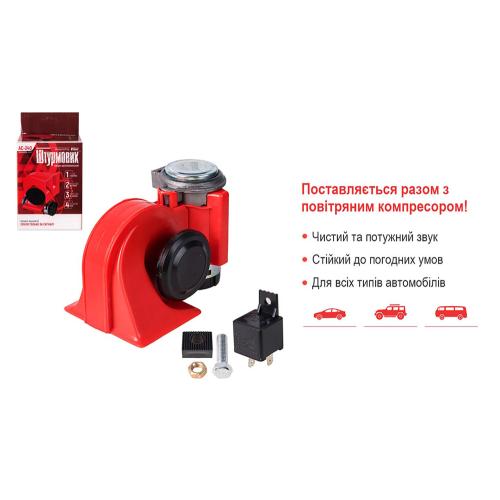 Сигнал повітряний AC-240 Штурмовик. Підключається до бортової мережі автомобіля 12 В. Сигнал чутно на відстані до 2000 метрів, відмінний варіант для тих, хто хоче збільшити потужність сигналу в своєму автомобілі.