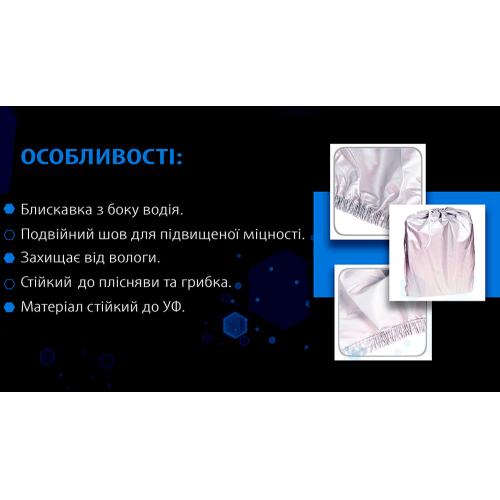 Легкий всесезонний тент для стоянки під відкритим небом і в гаражі. Захищає кузов від пилу, дощу/снігу, пташиного посліду, листя та УФ-випромінювання, зменшує вигоряння лаку й інтер’єру. Сірий поліестер швидко сохне, не вбирає бруд і компактно складається.