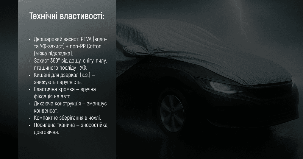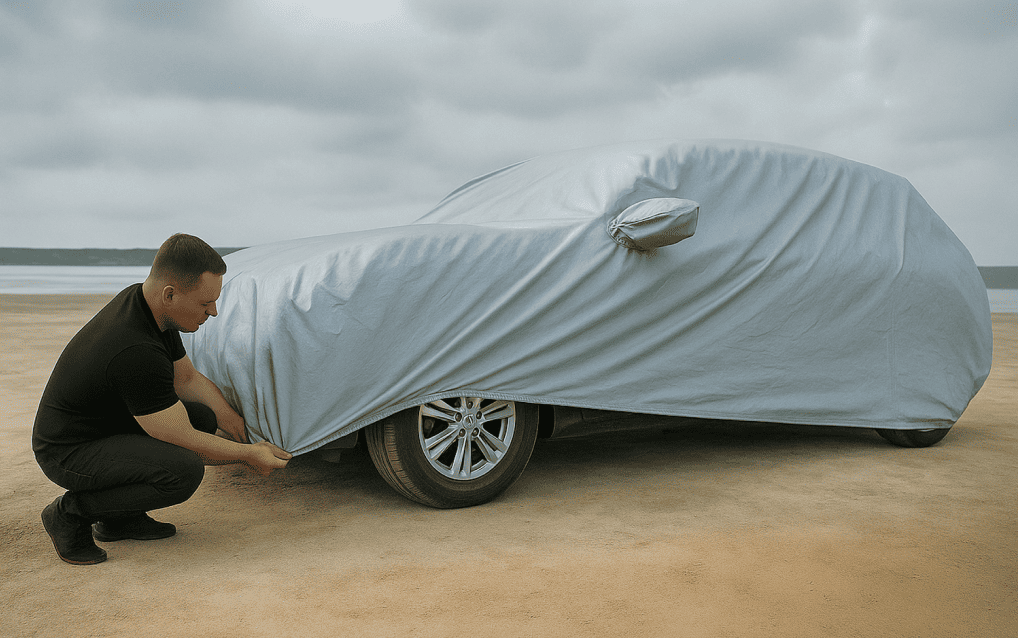 - Накривайте чистий і сухий кузов: змийте пил/пісок, складіть дзеркала, зніміть антену та гострі аксесуари.