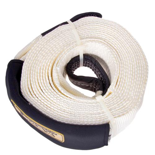 Виготовлений із високоміцного синтетичного матеріалу, стійкого до розривів і зношування. Ширина 80 мм рівномірно розподіляє навантаження, а довжина 9 м дозволяє використовувати трос навіть у складних умовах. Посилені петлі в місцях кріплення забезпечують підвищену надійність при буксируванні.