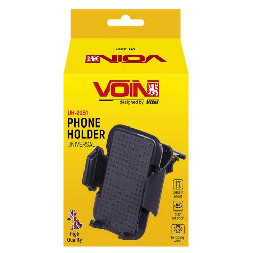 Універсальний автомобільний тримач від VOIN чудово підійде для вашого смартфона та невеликого планшета. Аксесуар кріпиться на вентиляційну решітку автомобіля. Тримач дозволяє закріпити телефон в горизонтальному або вертикальному положенні, забезпечуючи максимальну зручність.
