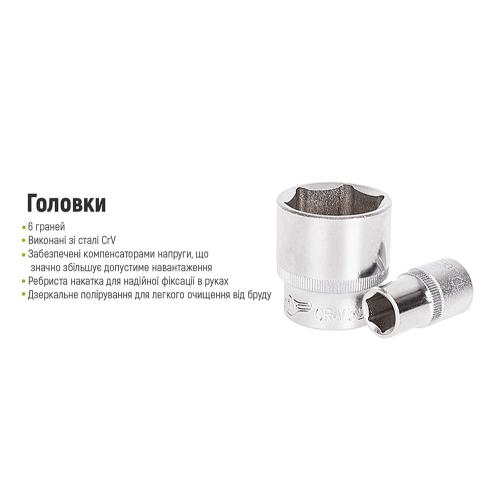Головки виготовлені з високоякісної легованої хромованадієвої сталі та мають трьошарове покриття. Інструмент здатний витримати великі навантаження. Також, головки обладнані компенсатором напруги та легко очищаються завдяки дзеркальному поліруванню поверхні.