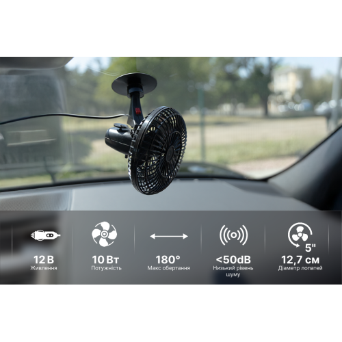 Vitol ВН.12.530 / HF-330 — компактний вентилятор на присосці для комфортних поїздок у спекотну погоду. Ідеальний варіант для водіїв і пасажирів, які шукають простий і ефективний спосіб охолодження. Легко кріпиться до скла або панелі приладів за допомогою присоски, не потребує інструментів.