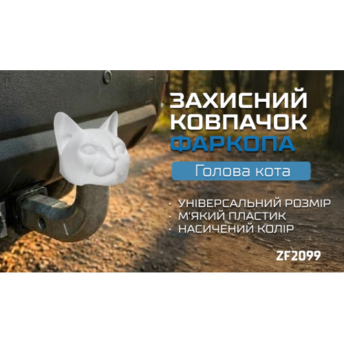 Захисний ковпачок фаркопа «Голова кота» — практичний аксесуар, що закриває кульку фаркопа від пилу, бруду та вологи, запобігаючи корозії. Білий фігурний дизайн додає авто індивідуальності та робить його впізнаваним.