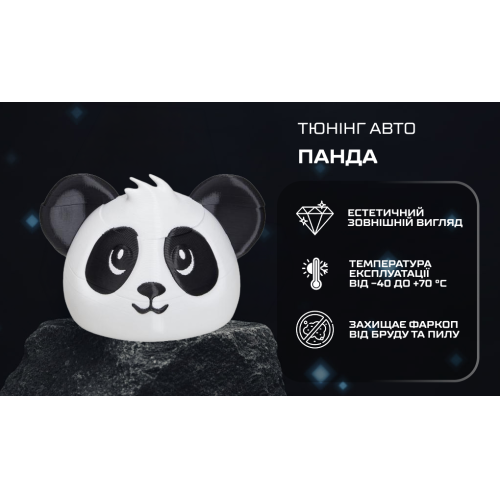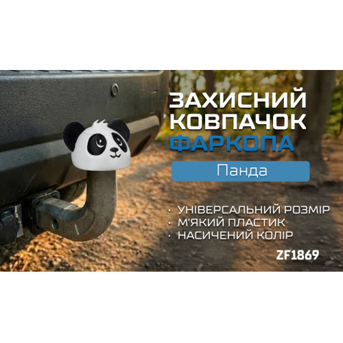 Захисний ковпачок фаркопа «Панда» — практичний аксесуар, що закриває кульку фаркопа від пилу, бруду та вологи, допомагаючи запобігти корозії. Чорно-білий дизайн у формі панди додає авто індивідуальності та робить його помітним у потоці.