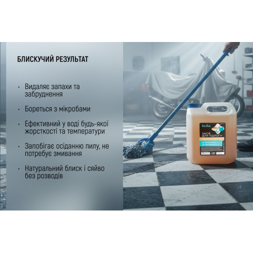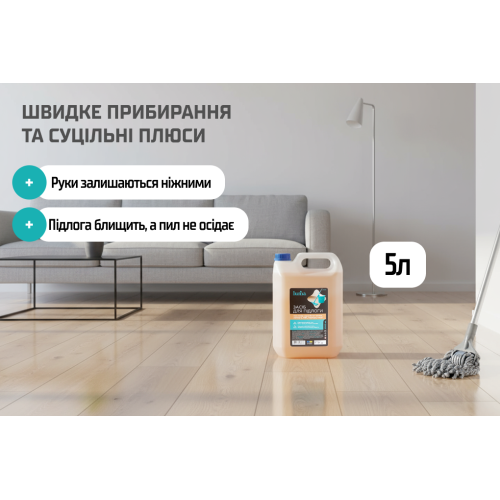 Після висихання підлога залишається чистою, блискучою та з приємним ароматом.