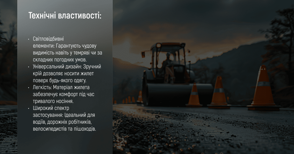 - У темну пору доби, у дощ/туман/сніг, при роботах біля дороги або вимушеній зупинці авто.